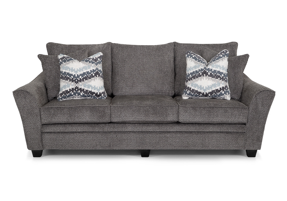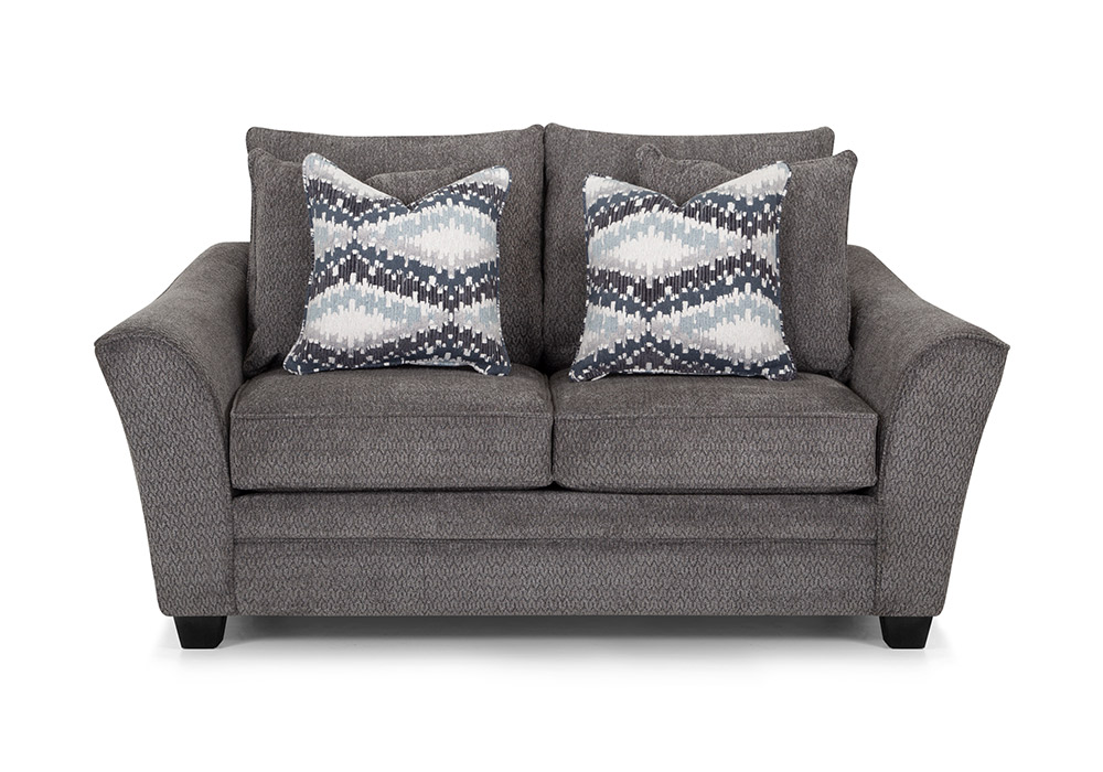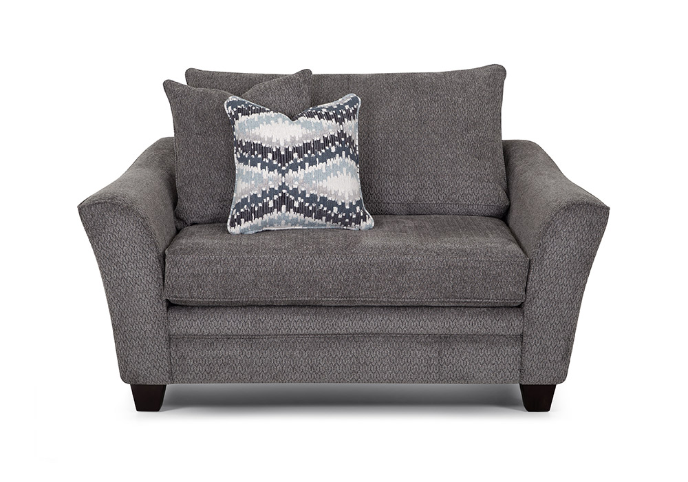 Experience a touch of “flare” with the meticulously crafted, thoughtfully designed collection which includes a sofa, loveseat, chair & a half and matching ottoman. All pieces are upholstered in a soft, durable gray fabric that is contrasted with coordinating accent pillows. Flared arms add a contemporary element, while solid wooden legs provide increased durability. The Eastbrook Collection features WOW Seating System, which combines precision-cut wood frames with gel-blended foam seating for exceptional support. The reversible seat and back cushions are designed to be flipped, allowing for even wear and extending the lifespan of your furniture. Also available in Hannigan Fog.